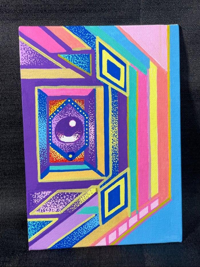 This original 5x7 piece was created entirely with POSCA markers — an explosion of vibrant color and bold geometric shapes. It’s my expression of becoming a new me — breaking into this reality from another dimension.